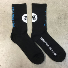 High cuff trail socks. Reinforced heel and toe, arch support, and a tall cuff with enough bulk in the knit to offer a bit of ankle protection.